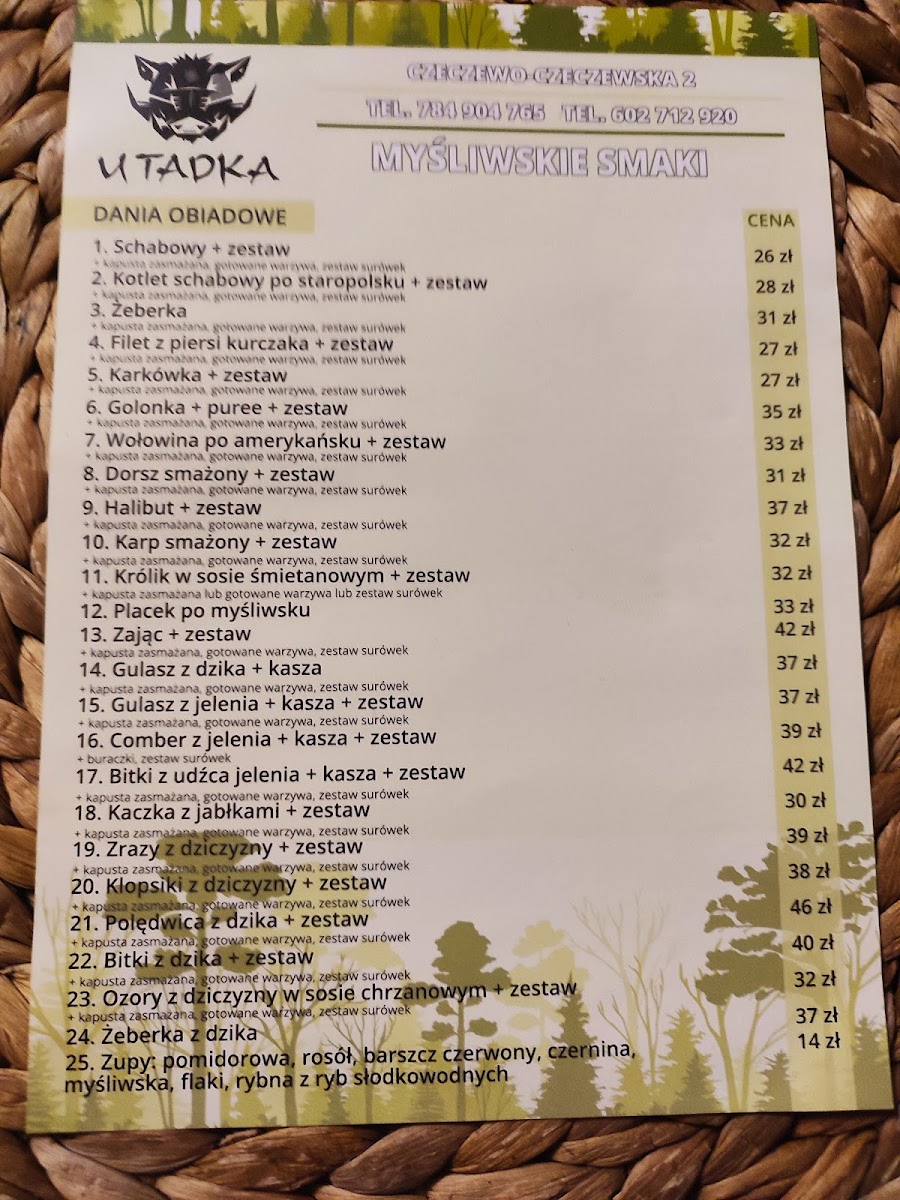 The blend of bold, game-inspired flavors and comforting Polish staples ensures that Myśliwskie Smaki U Tadka offers a truly memorable dining experience. Whether you're indulging in wild game, savoring hearty pierogi, or enjoying a bowl of rich, flavorful soup, the menu is a true celebration of Poland’s culinary heritage.